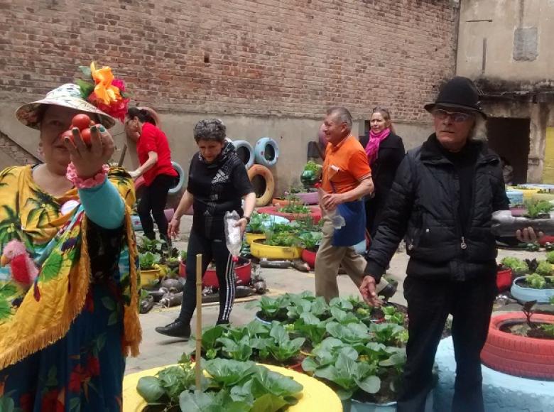 Hombres, mujeres, niños, adultos mayores y personas en condición de discapacidad, residentes en la localidad de la Candelaria siembran en materiales reciclables como: llantas, botellas plásticas, recipientes, y cajas de madera, entre otros, batavia, espinacas y acelgas.