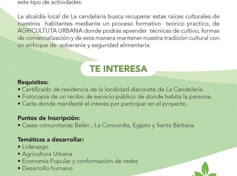 Las personas interesadas en participar, deben presentar en la Casa de la Agricultura Urbana, fotocopia de la cédula y certificación de residencia que emite la Alcaldía local de La Candelaria.
