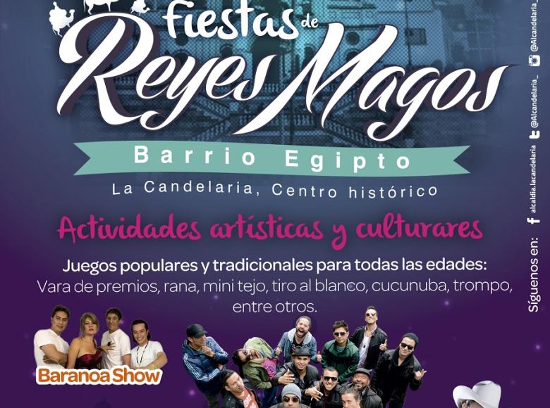 Desde el 4 hasta el 6 de enero de 2014 se lleva a cabo la celebración más antigua de Bogotá, se trata de la Fiesta de reyes magos 2014, en el barrio Egipto, ubicado en la avenida circunvalar entre calles 6 y 10, un lugar que por años ha festejado este tradicional evento cultural y familiar, que este año llega a su versión número 98.