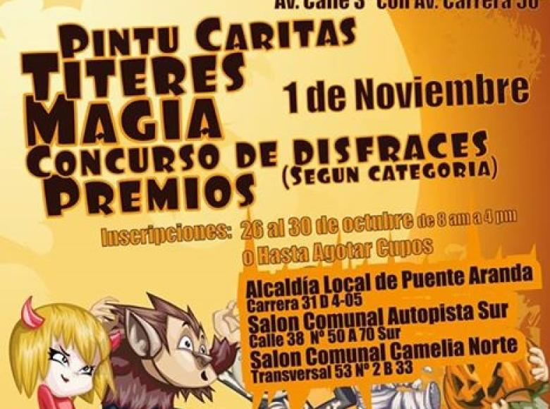 Para mayor información comuníquese al número de celular 311 271 07 00 o al teléfono fijo en Bogotá 364 84 60, extensión 234, oficina de Cultura, recreación y deporte de la alcaldía local.La jornada, cuya participación es gratuita también, ofrecerá pintu caritas, títeres, magia, concurso de disfraces (según categoría), premios y regalos para los niños asistentes. El encuentro se dará en el parque El Sol (avenida calle 3 con avenida carrera 50), de 8:00 a.m. a 1:00 p.m.