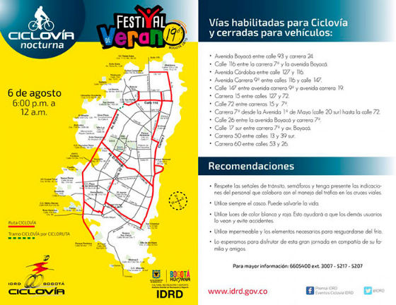 Este jueves 6 de agosto de 2015, la Capital de la República celebra su cumpleaños 477 y como regalo a la ciudad se llevará a cabo la Ciclovía nocturna, desde las 6:00 de la tarde y hasta las 12:00 de la noche.