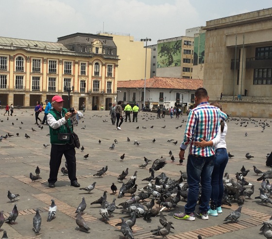 Hoy, también hay personas que viven del trabajo que realizan en la Plaza de Bolívar, los fotógrafos, los que venden maíz para alimentar a las palomas, los guías turísticos, los vendedores de helados, dulces y mecatos.