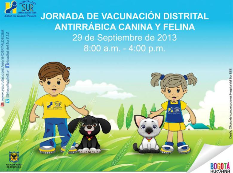 Con el objetivo de erradicar la rabia en animales caninos y felinos en Bogotá, la Administración Distrital realizará este domingo 29 de septiembre la gran Jornada de Vacunación a Mascotas, que se llevará a cabo en diferentes puntos de la ciudad desde las ocho de la mañana hasta las cuatro de la tarde.