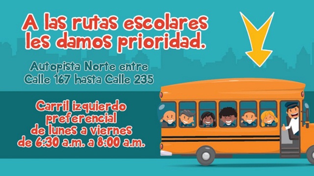 Durante el funcionamiento del carril escolar de lunes a viernes, los recorridos se realizarán con los siguientes cambios de sentido en las calles 215 y 209 en el costado occidental de la Autopista Norte.