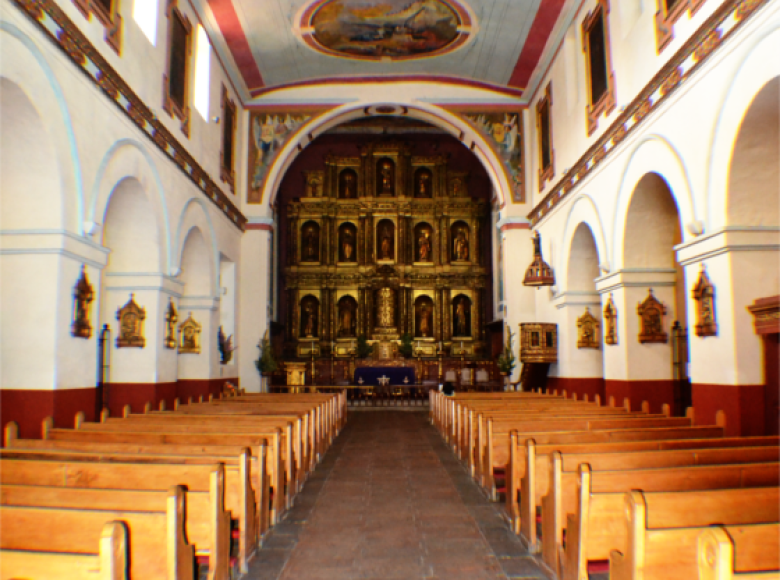 Iglesia San Francisco (Carrera 7 con Avenida Jiménez), su construcción inició 20 años después de la fundación de Bogotá, es una destacada obra arquitectónica y artística. Hizo parte del extenso conjunto de la orden de los Franciscanos y debió ser reconstruida, luego del devastador terremoto de 1785, por el arquitecto fray Domingo de Petrés y el ingeniero Domingo Esquiaqui. En su rica ornamentación se resume la inagotable labor artística de talladores, escultores, artesanos y pintores criollos y extranjeros. Su altar mayor, fabulosa creación de Ignacio García de Ascucha y Lorenzo Hernández de la Cámara, es una de las obras maestras del tallado colonial santafereño.