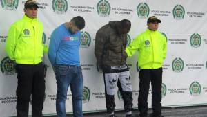 En la foto el capturado por homicidio en Rafael Uribe Uribe y dos policíasSeguridad