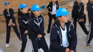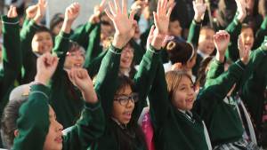 Foto que muestra estudiantes y docentes de Bogotá en una tarima Educación