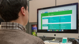 Foto de una mujer accediendo a programas y becas internacionales.Internacional