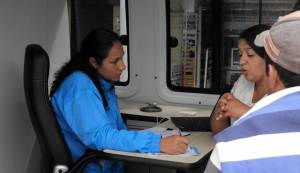 Gestores sociales del IPES ofreciendo información y orientación a una de las asistentes en la 'Megaruta de Servicios'Desarrollo Económico