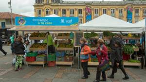 Imagen de los Mercados Campesinos en Bogotá con uno de los campesinos participantes.Desarrollo Económico