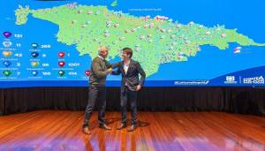 En la foto e secretario de Gobierno mirando los proyectos participativos ganadores Gobierno