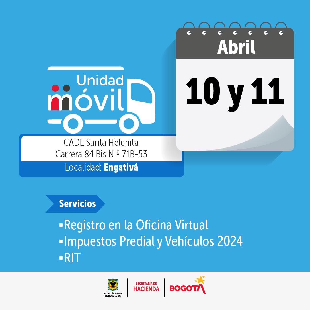 La Secretaría Distrital de Hacienda - SDH, informa que para los días 10 y 11 de abril brindara atención desde la unidad móvil en el siguiente punto de la Red CADE: