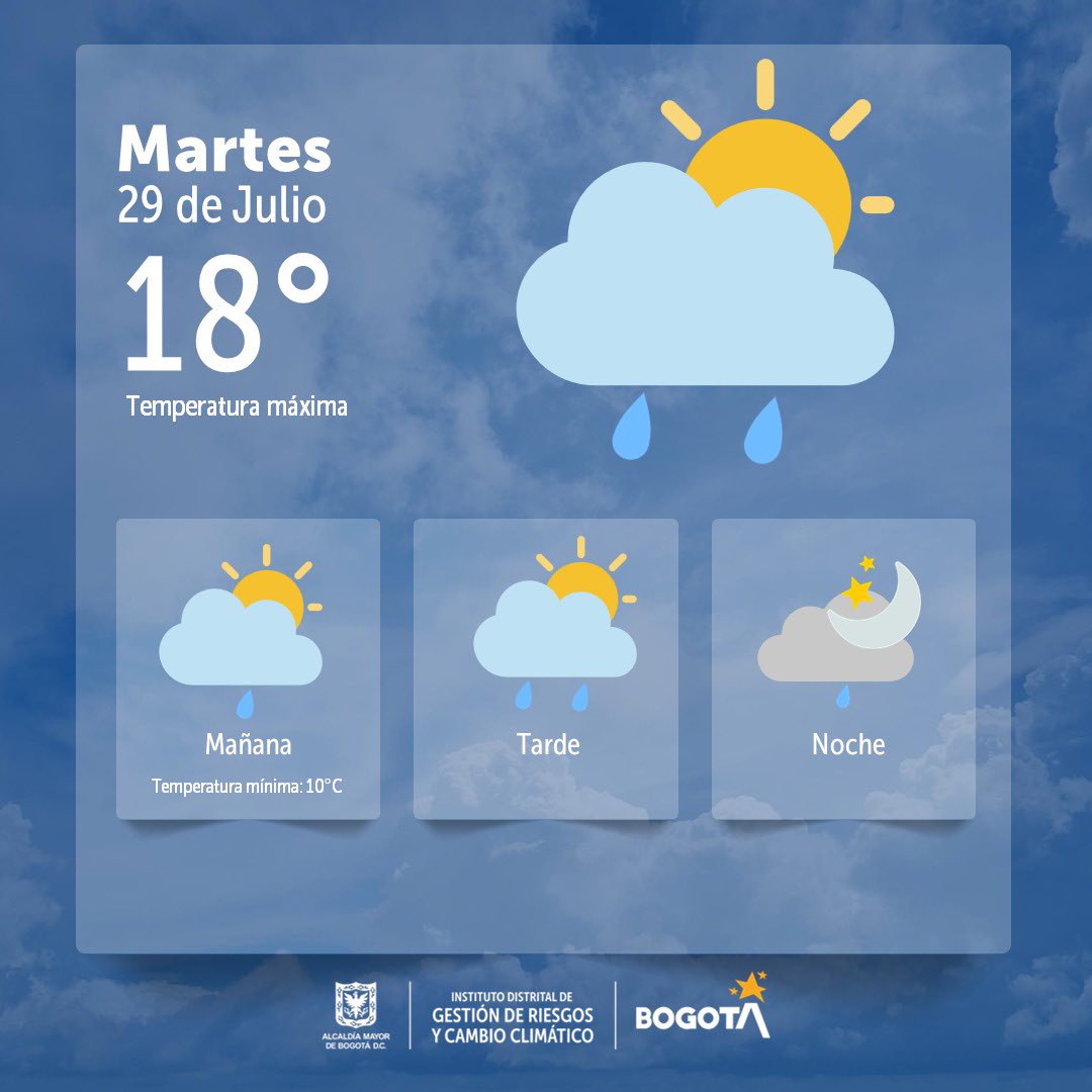 ¡Aquí sí pasa! Te presentamos el pronóstico del clima o del tiempo en Bogotá, mi Ciudad, mi Casa para que programes tu salida y evites contratiempos. Aquí encuentras el reporte entregado por el Instituto Distrital de Gestión de Riesgos y Cambio Climático (IDIGER) para este martes 29 de julio de 2025. ¡Toma nota!