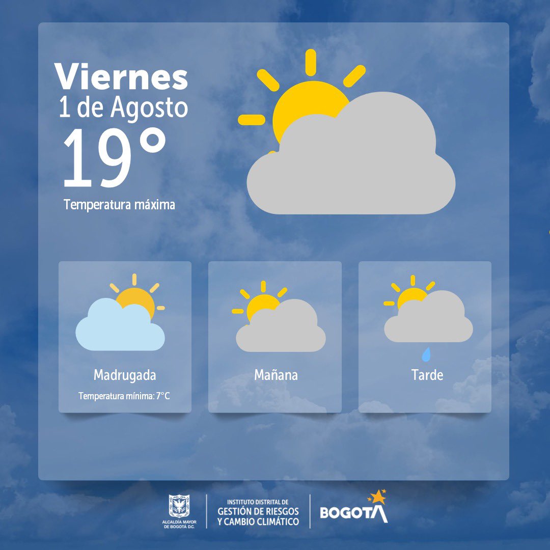 Aquí sí pasa, te presentamos el pronóstico del clima o del tiempo en Bogotá, mi Ciudad, mi Casa para que programes tu salida y evites contratiempos. Aquí encuentras el reporte entregado por el Instituto Distrital de Gestión de Riesgos y Cambio Climático (IDIGER) para este viernes 1 de agosto de 2025. ¡Toma nota!