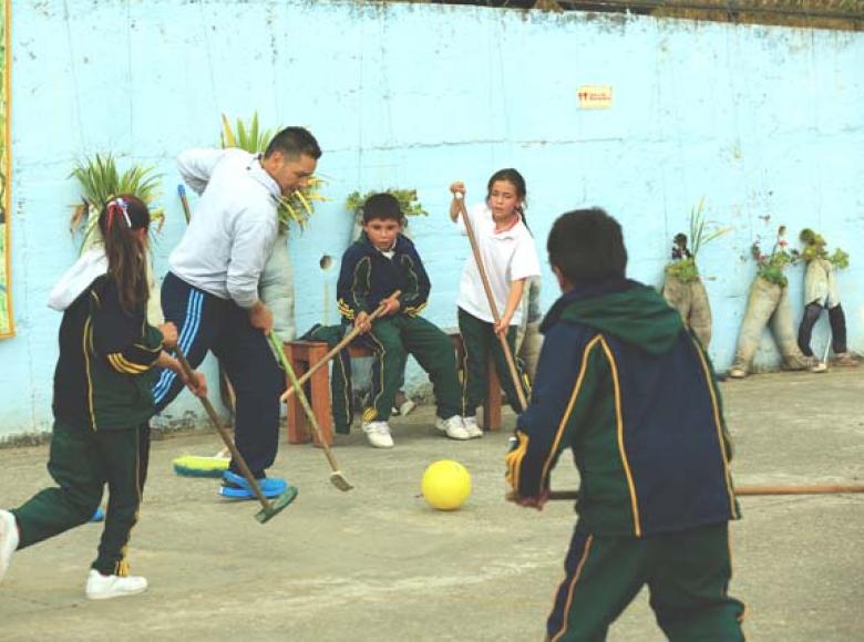 El más reciente crecimiento de este proyecto incluye al profesor de educación física. Las Pesas, bolos, colchonetas y palos de hockey son elaborados con materiales reciclables.