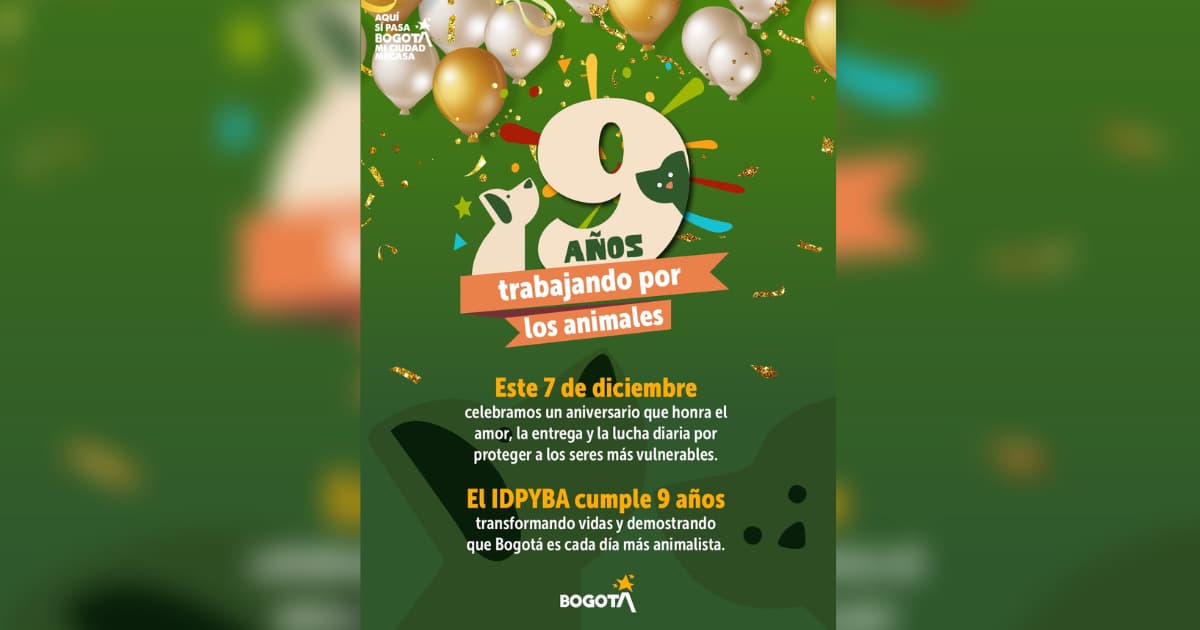 Este 7 de diciembre de 2025, el Instituto Distrital de Protección y Bienestar Animal (IDPYBA) celebra nueve años de trabajo incansable en Bogotá, mi Ciudad, mi Casa.