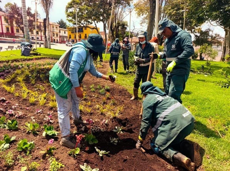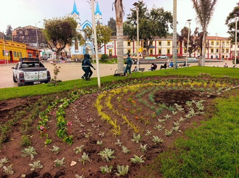 Entre el 19, 20 y 24 de marzo, 85 metros cuadrados de zona verde donde habitan cinco palmas de cera, cuatro urapanes, un sangregado, un nogal, siete árboles jóvenes y varios monumentos que honran a los muiscas, reverdecieron con la plantación de ocho especies: salvia microphylla, azulina, gazania, bergenia, suelda con suelda, cinta, clavellina y oreja de liebre