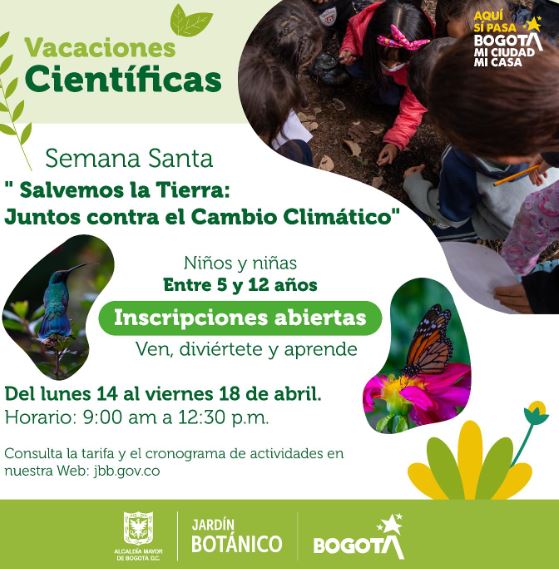 Conoce detalles de las las Vacaciones Científicas del Jardín Botánico de Bogotá durante la Semana Santa 2025, en la siguiente pieza gráfica: