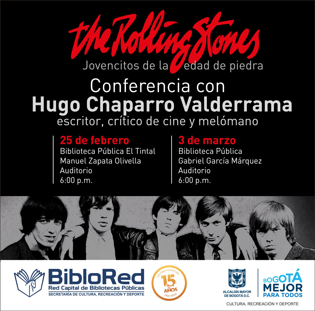 Con el fin de calentar motores para el concierto de los Rolling Stones que se realizará en el Estadio El Campín este 10 de marzo, Biblored realiza un ciclo de conferencias con melómanos consagrados y grandes conocedores de la legendaria banda.