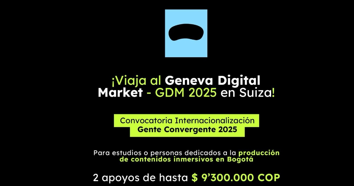 ¡Aquí sí pasa, Bogotá, mi Ciudad, mi Casa promueve la presencia y circulación internacional del talento bogotano! La Alcaldía Mayor de Bogotá, a través de la Secretaría Distrital de Cultura, Recreación y Deporte (SDCRD) y en alianza con Proimágenes Colombia, abre una convocatoria dirigida a empresarios y representantes de estudios creativos bogotanos para participar en el Geneva International Digital Market – GDM, que se realizará del 3 al 6 de noviembre de 2025 en Ginebra, Suiza.