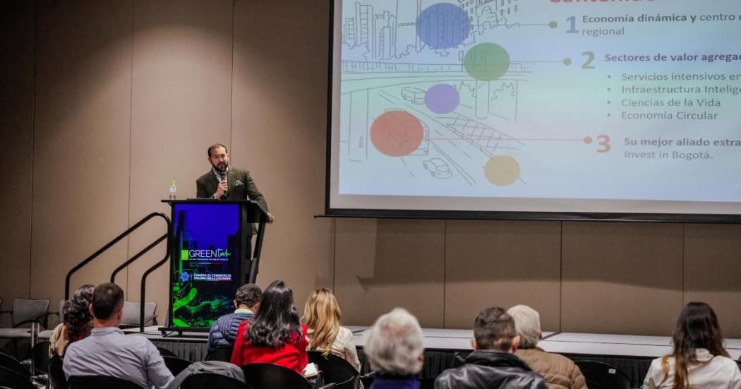 ¡Bogotá, mi Ciudad, mi Casa sigue posicionándose en América Latina y el continente como destino de eventos y congresos internacionales! Con un mensaje claro sobre el rol estratégico de la ciudad como epicentro regional de negocios sostenibles e inteligentes, Carlos Alberto Suárez, director ejecutivo (e) de Invest in Bogotá, lideró la participación de la agencia en Expo Green Tech 2025, el evento de innovación y sostenibilidad más importante del país, organizado por la Cámara de Comercio Colombo-Italiana.