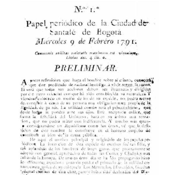 Este medio de comunicación lo dirigía el intelectual Manuel del Socorro Rodríguez (amigo del virrey José Manuel de Ezpeleta) fungía en esa época como bibliotecario público de lo que hoy conocemos como la Biblioteca Nacional de Colombia e impulsó el lanzamiento del periódico que en esos momentos escribía sobre temas de actividad política de España, acontecimientos militares detalles de la vida cotidiana en la colonia.