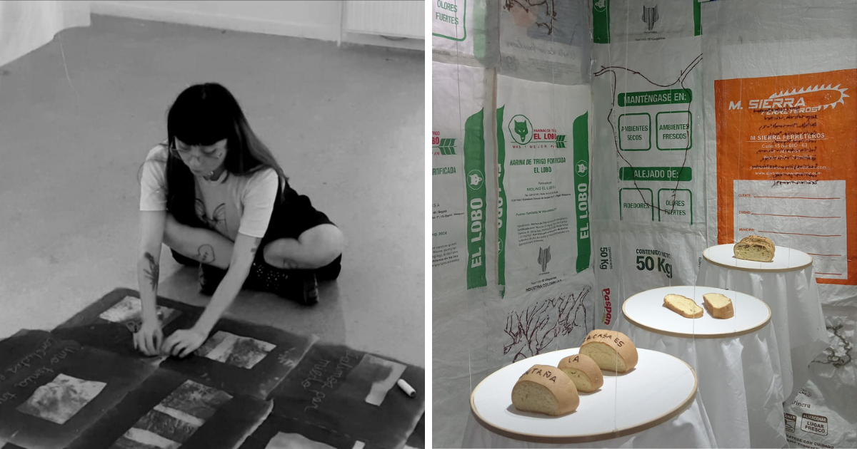 La artista comentó sobre como estableció a través de materiales como el pan y las lonas de harina una conexión entre lo cotidiano, el cuidado y lo político: