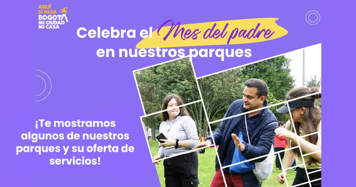 Te invitamos a conocer la siguiente publicación en la red social X del Instituto Distrital de Recreación y Deporte (IDRD), con la invitación a celebrar el Mes del Padre en los parques de Bogotá: