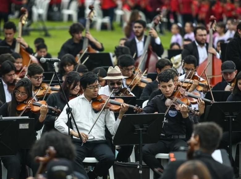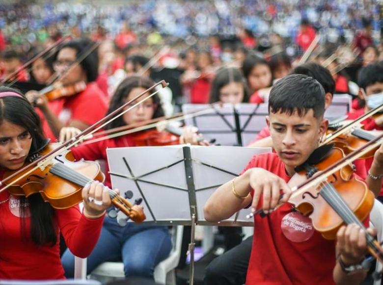 El parque Simón Bolívar fue escenario para cerca de 16.000 artistas de todas las edades, entre músicos y coristas, que se reunieron para interpretar al unísono seis obras musicales, más de 13.000 son estudiantes de colegios oficiales de la capital.