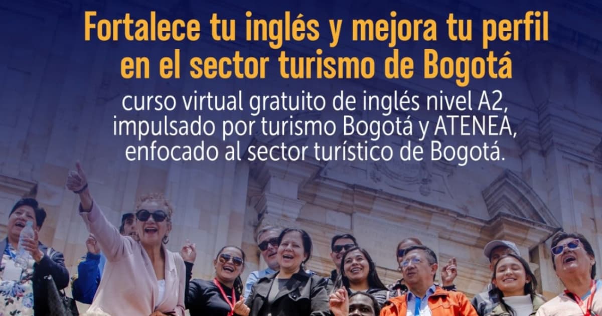 ¡En ‘Bogotá, mi Ciudad, mi Casa’ hay oferta de formación gratuita! La Alcaldía Mayor de Bogotá, el Instituto Distrital de Turismo (IDT) y la Agencia Distrital para la Educación Superior, la Ciencia y la Tecnología (Atenea) con apoyo del British Council, ofrecen cursos gratis de inglés virtuales para guías y trabajadores del sector de turismo en Bogotá ¡Conoce los requisitos e inscríbete hasta el 25 de agosto!