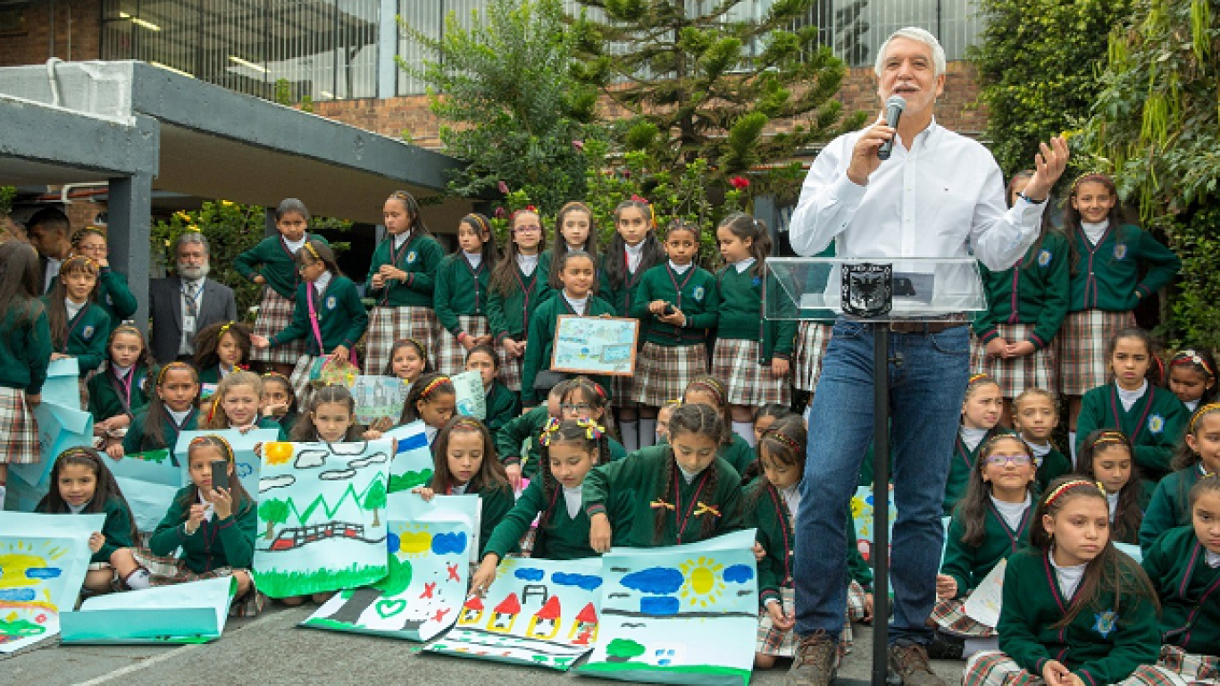 El mandatario de la ciudad, como en una clase de historia, les recordó a las niñas de este colegio cómo fue fundada Bogotá y cómo se ha transformado a lo largo de los años.