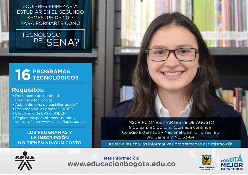 “Esta nueva convocatoria surge gracias al convenio entre el Distrito y el SENA, que tiene como meta generar 15.000 cupos en este cuatrienio con programas que impulsen no solo el desarrollo de la ciudad sino principalmente los proyectos de vida de nuestros jóvenes”, aseguró la secretaria de Educación, María Victoria Angulo.
