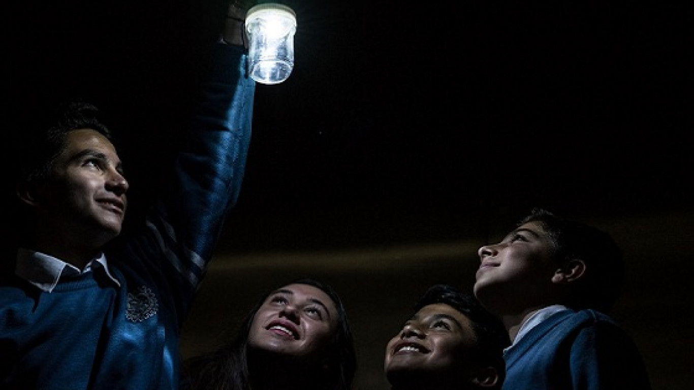 “Son lámparas hechas con baterías viejas de celular y otros componentes reciclados. Funcionan con energía solar y la carga alcanza hasta para dos días. La idea es entregárselas a los niños de La Guajira junto con mensajes de aliento y solidaridad que vamos a meter dentro de las lámparas. Ya tenemos listas 40 lámparas, solo nos faltan el centro de carga y el panel solar y los recursos para llevar todo hasta allá”, explicó Juan Diego Gómez, estudiante de 13 años.
