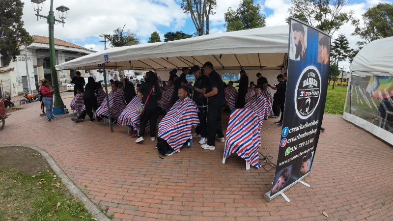 La siguiente fotografía registra el corte de cabello gratuito, uno de los servicios más solicitados durante de la feria: