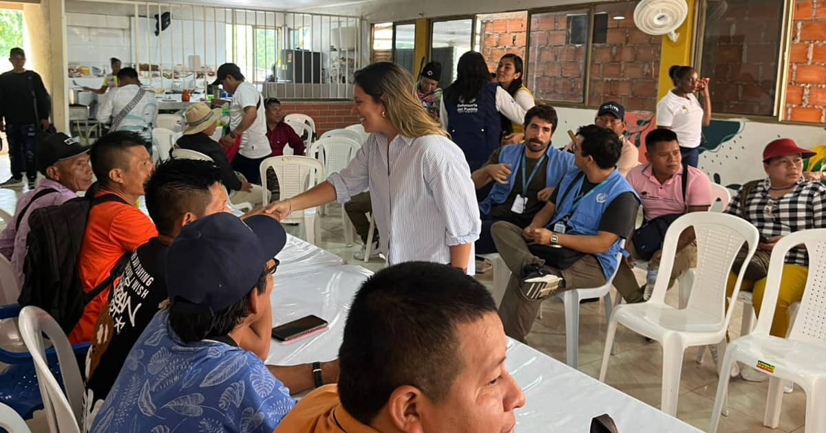 La consejera de Distrital de Paz, Víctimas y Reconciliación, Isabelita Mercado, sostuvo en el corregimiento de Santa Cecilia, departamento de Risaralda, una reunión por el retorno sostenible de las familias Emberá asentadas en las UPI La Rioja, La Florida, y la vía de hecho del Parque Nacional.