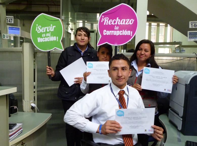 Dando cumplimiento a la Ley 1712 de 2014 por medio de la cual se crea la 'Ley de Transparencia y el Derecho de Acceso a la Información Pública Nacional', Walter Acosta, Director Distrital de Servicio al Ciudadano -DDSC-, de la Secretaría General, (segundo, de izquierda a derecha) se comprometió a seguir trabajando en el desarrollo de acciones tendientes a salvaguardar los recursos de la ciudad, recuperación del sentido de lo público, a la búsqueda de credibilidad y la generación de un ambiente de confianza.
