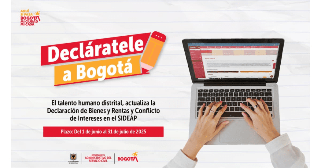 ¡Aquí sí pasa! En Bogotá, mi Ciudad, mi Casa, el compromiso con la transparencia y la ética pública se demuestra con hechos. Por eso, el Departamento Administrativo del Servicio Civil Distrital (DASCD) invita a servidoras, servidores y colaboradores de las entidades y organismos distritales a actualizar las Declaraciones de Bienes y Rentas y de Conflicto de Intereses en el SIDEAP hasta el 31 de julio de 2025.