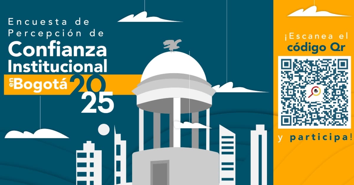 ¡En Bogotá la participación ciudadana evalúa e incide en la construcción de políticas públicas! Teniendo en cuenta que el actual Plan Distrital de Desarrollo 'Bogotá Camina Segura' tiene como eje estructural el fortalecimiento de la confianza, y que la Veeduría Distrital, en el marco de sus funciones conferidas por el Decreto Ley 1421 de 1993 y el Acuerdo 24 de 1993, realiza el seguimiento al avance de los programa y proyectos con los que cuenta la Administración distrital en su Plan de Desarrollo, invita a los bogotanos y bogotanas a responder la Encuesta de Percepción de Confianza Institucional 2025 en Bogotá. ¡Participa!