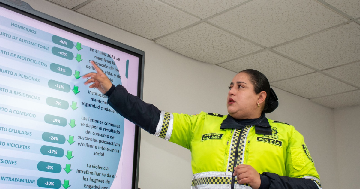 Entre los principales indicadores delictivos del año del mes de noviembre, en comparación frente al mismo mes de 2024, se destacan las reducciones en homicidios (-46 %), hurto de automotores (-41 %), hurto de celulares (-24%), hurto de motocicletas (-21 %), hurto a comercio (-19 %), hurto a personas (-11 %) y hurto de bicicletas (-17 %). La violencia intrafamiliar disminuyó en un 10 %, mientras que las lesiones personales bajaron un 8 %, consolidando una tendencia sostenida en la contención delictiva en la localidad.