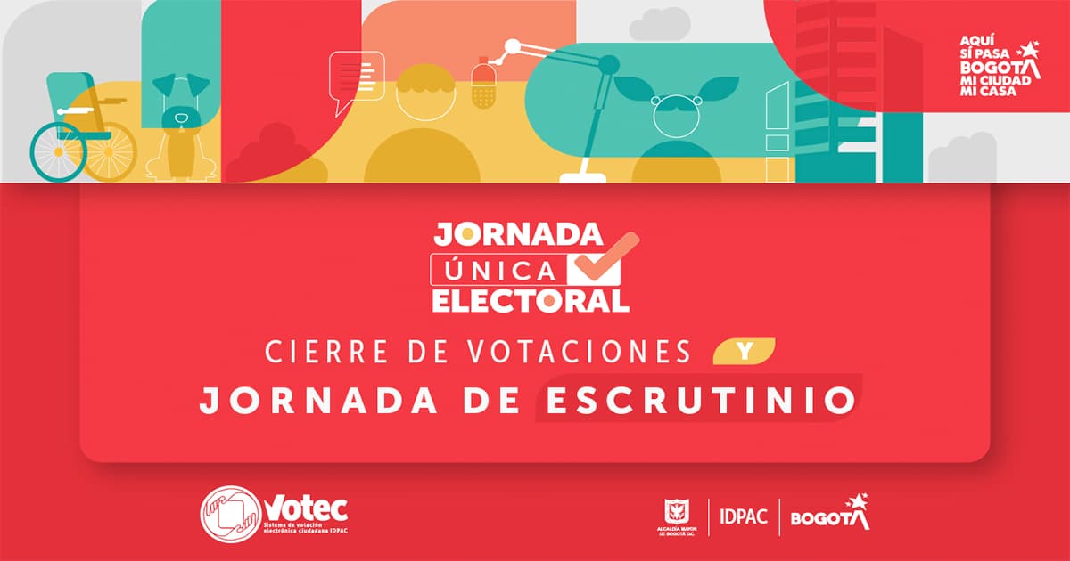 ¡Aquí sí pasa, en Bogotá, mi Ciudad, mi Casa promovemos la participación ciudadana! El Instituto Distrital de la Participación y Acción Comunal (IDPAC) finaliza el proceso de votación de la Jornada Única Electoral, que entra en su recta final con la etapa de escrutinio el martes 29 de julio del 2025, a las 8:00 a. m., desde las instalaciones del IDPAC.