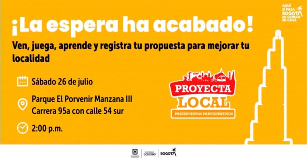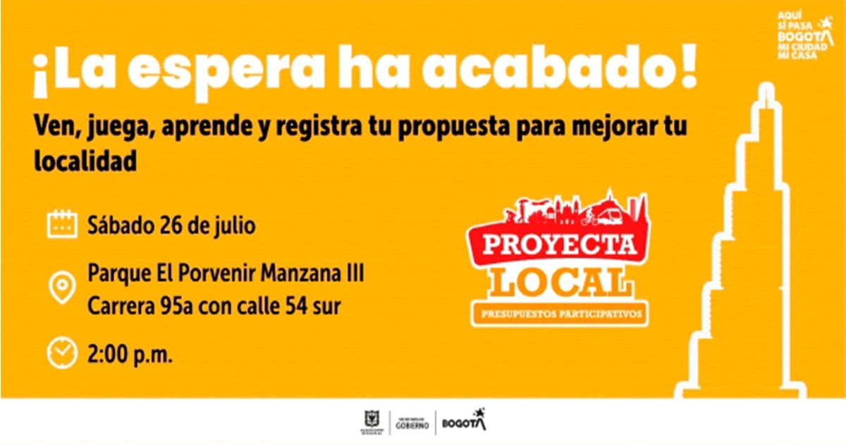¡Aquí sí pasa! En Bogotá, mi Ciudad, mi Casa incentivamos la participación ciudadana! La estrategia de participación más importante de Bogotá está de regreso. Este sábado 26 de julio de 2025, la Secretaría Distrital de Gobierno (SDG) invita al gran evento de lanzamiento de Proyecta Local – Presupuestos Participativos 2025, una iniciativa que permite a los bogotanos y bogotanas decidir directamente cómo invertir los recursos de sus localidades en sus entornos y barrios.