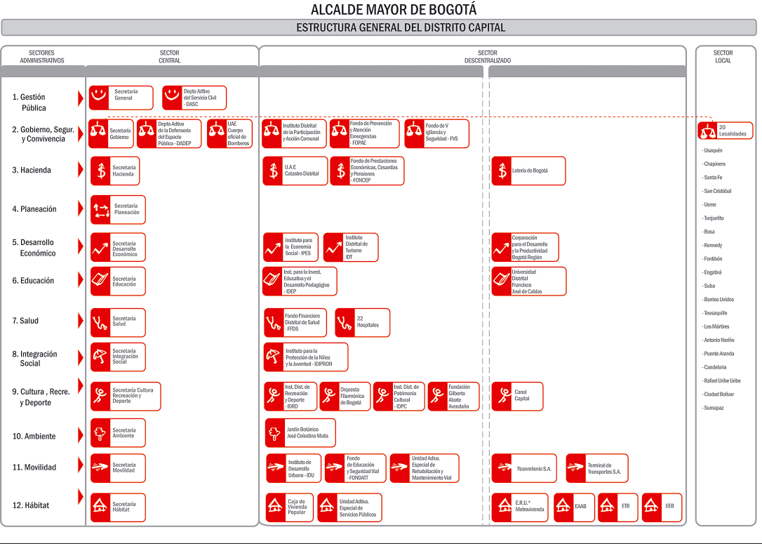 La propuesta busca la reorganización de la estructura general de la administración distrital a través de la conformación de sectores administrativos y el establecimiento de un sistema de coordinación que facilite la articulación sectorial, intersectorial y transversal, como herramientas básicas de una gestión pública efectiva y orientada la materialización de los derechos de todos los habitantes de la ciudad.