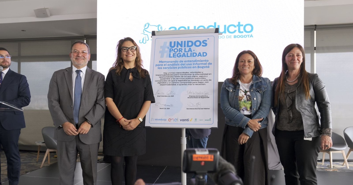 La Secretaría Distrital del Hábitat (SDHT), la Empresa de Acueducto y Alcantarillado de Bogotá (EAAB), Enel Colombia y Vanti suscribieron un Memorando de Entendimiento para fortalecer el trabajo conjunto frente al uso informal e irregular de los servicios públicos en asentamientos humanos de origen informal de la ciudad.
