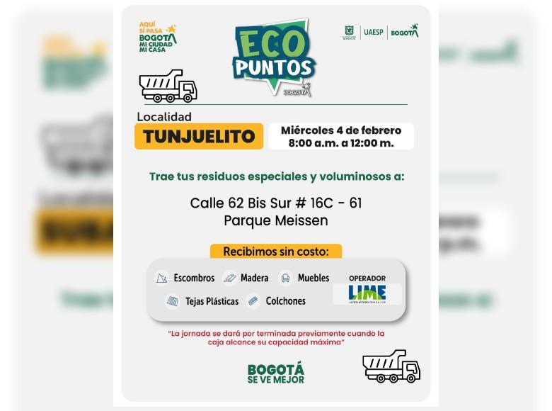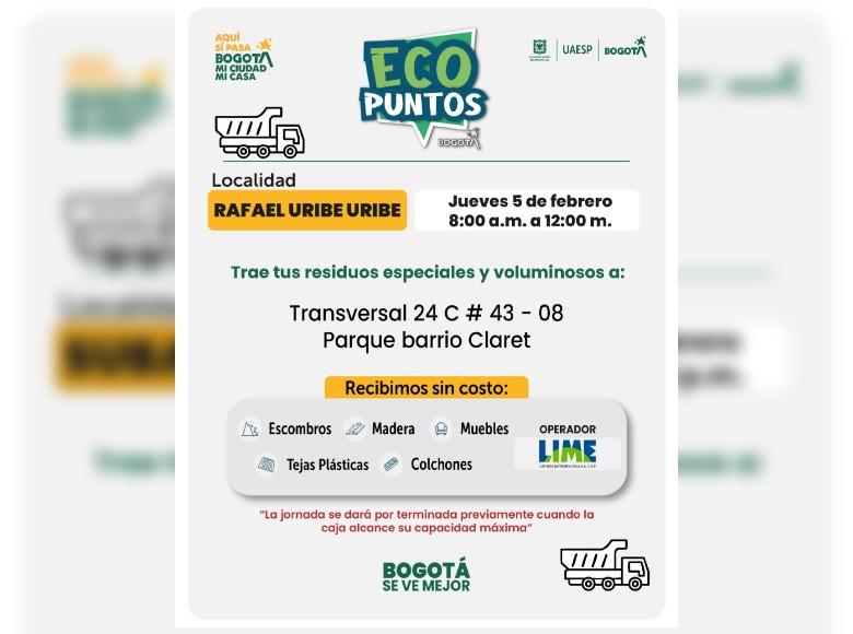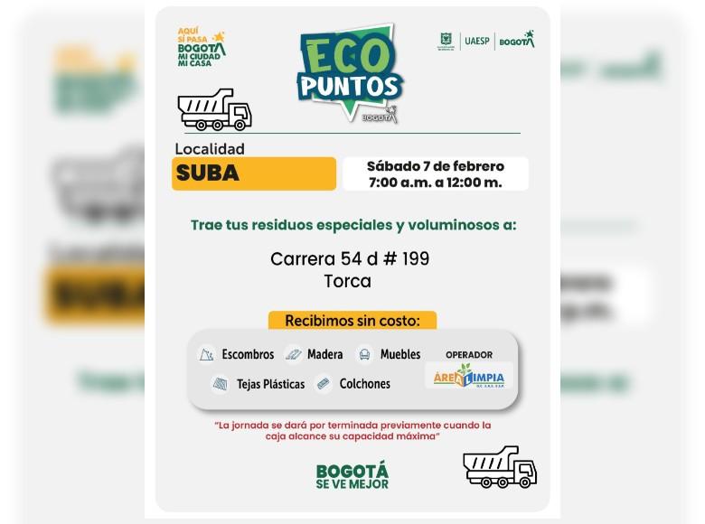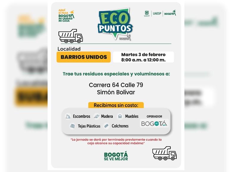 ¡Aquí sí pasa, en Bogotá, mi Ciudad, mi Casa trabajamos para mantener limpia nuestra ciudad! La Unidad Administrativa Especial de Servicios Públicos (UAESP) invita a la ciudadanía que tenga muebles, escombros o enseres en mal estado a llevarlos a los Ecopuntos disponibles en Bogotá que se tendrán ubicados en Suba, Barrios Unidos y más localidades, del 2 al 7 de febrero del 2026.