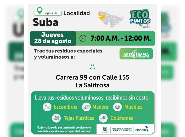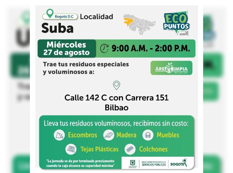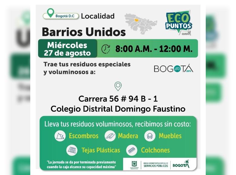 ¡Aquí sí pasa, en Bogotá, mi Ciudad, mi Casa trabajamos para mantener limpia nuestra ciudad! La Unidad Administrativa Especial de Servicios Públicos (UAESP), invita a la ciudadanía que tenga muebles, escombros o enseres en mal estado a llevarlos a los Ecopuntos disponibles en Bogotá que se tendrán ubicados en Puente Aranda, San Cristóbal y más localidades, del 25 al 31 de agosto de 2025.