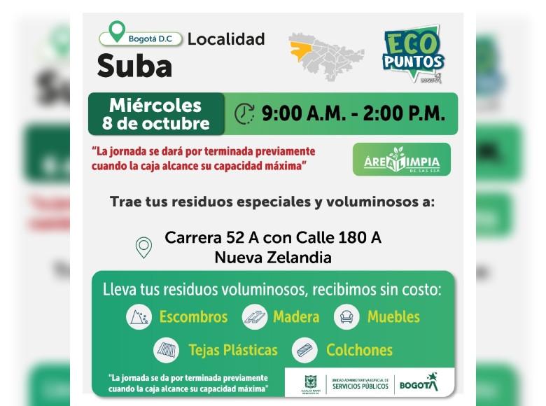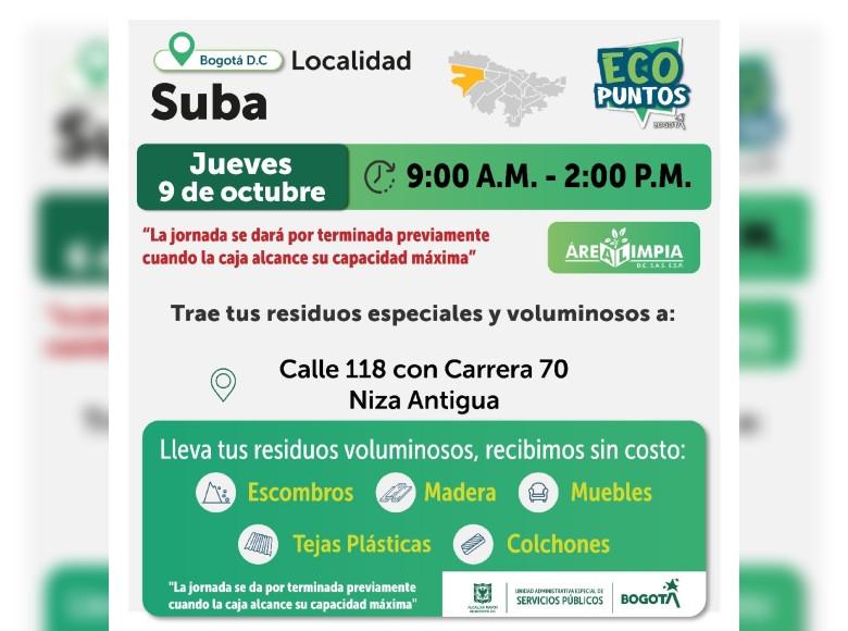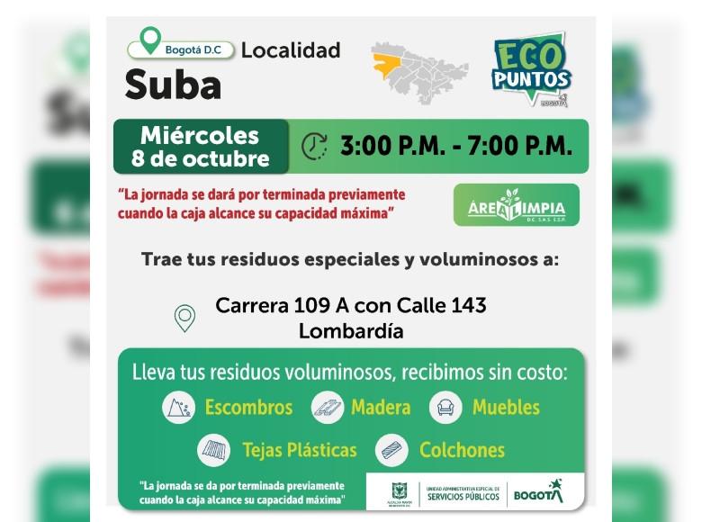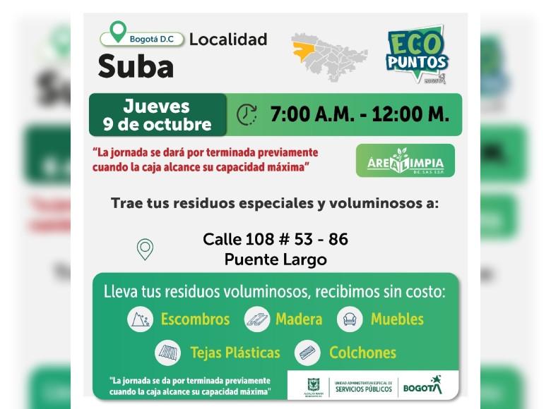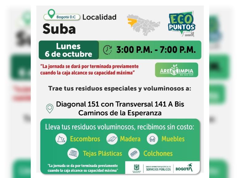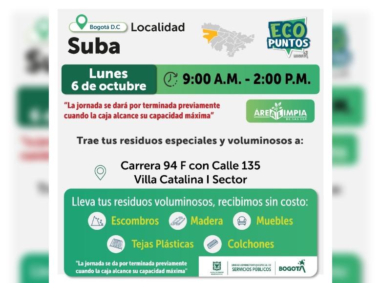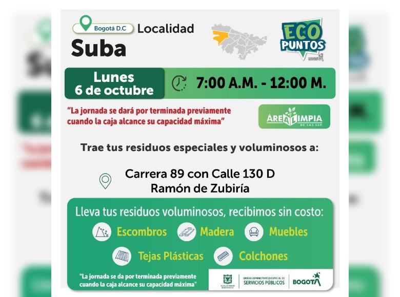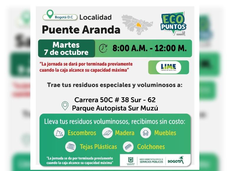 ¡Aquí sí pasa, en Bogotá, mi Ciudad, mi Casa trabajamos para mantener limpia nuestra ciudad! La Unidad Administrativa Especial de Servicios Públicos (UAESP), invita a la ciudadanía que tenga muebles, escombros o enseres en mal estado a llevarlos a los Ecopuntos disponibles en Bogotá que se tendrán ubicados en Puente Aranda, San Cristóbal y más localidades, del 6 al 11 de octubre de 2025.