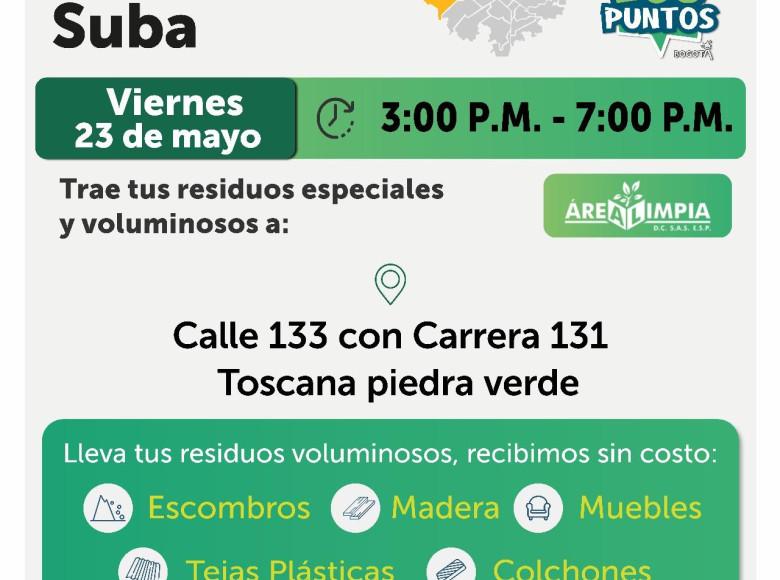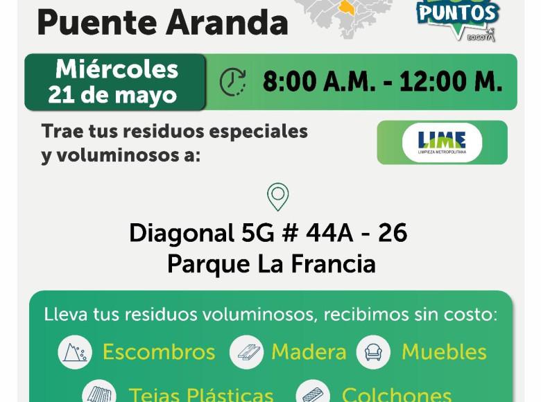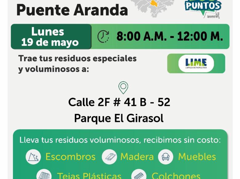 Ten en cuenta que la UAESP dispone semanalmente de varios Ecopuntos para prestar este servicio a la ciudadanía en las localidades de Bogotá.