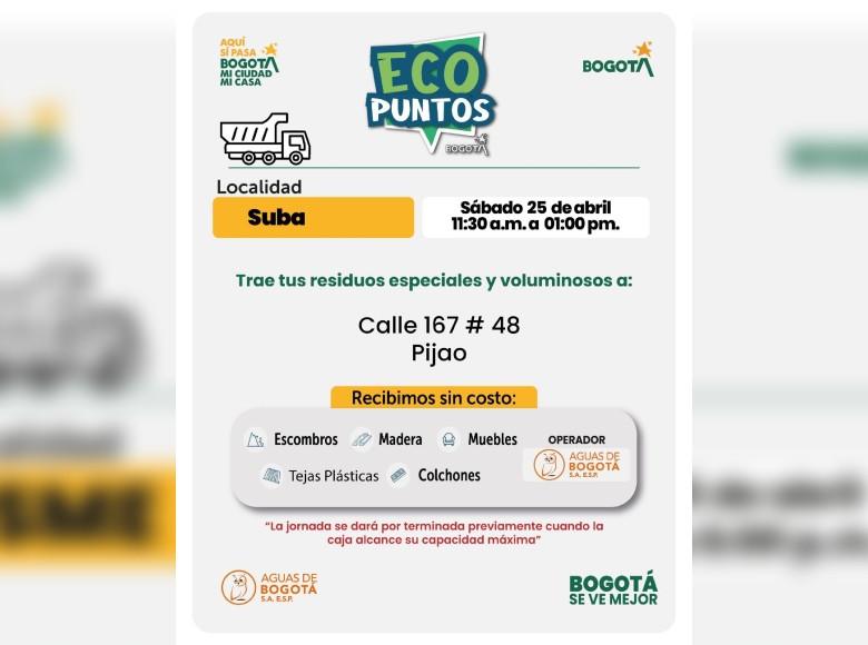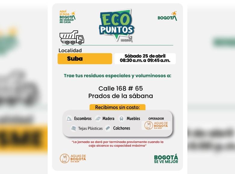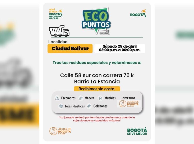 ¡Aquí sí pasa! En Bogotá, mi Ciudad, mi Casa trabajamos para mantener limpia nuestra ciudad. La Unidad Administrativa Especial de Servicios Públicos (UAESP) invita a la ciudadanía que tenga muebles, escombros o enseres en mal estado a llevarlos a los Ecopuntos disponibles en Bogotá que se tendrán ubicados en Suba, Engativá, Ciudad Bolívar y más localidades, este 25 de abril del 2026.