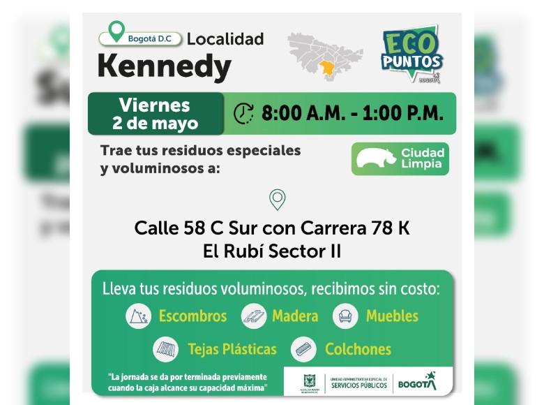 ¡Aquí sí pasa, en ‘Bogotá, mi Ciudad, mi Casa’ trabajamos para mantener limpia nuestra ciudad! La Unidad Administrativa Especial de Servicios Públicos (UAESP), invita a la ciudadanía que tenga escombros, muebles o enseres en mal estado a llevarlos a los Ecopuntos disponibles en Bogotá que se tendrán ubicados diversas localidades, del 28 de abril al 3 de mayo de 2025.