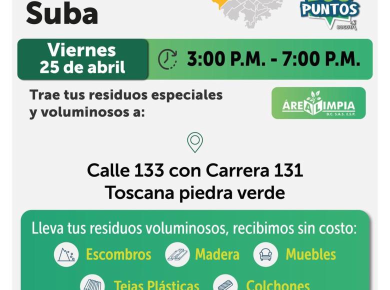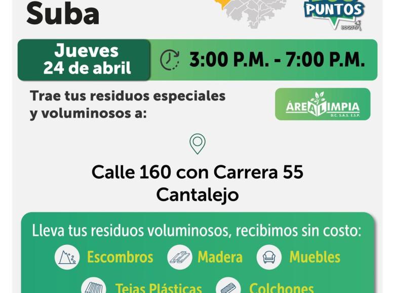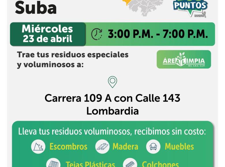 ¡Aquí sí pasa, en Bogotá, mi Ciudad, mi Casa trabajamos para mantener limpia nuestra ciudad! La Unidad Administrativa Especial de Servicios Públicos (UAESP), invita a la ciudadanía que tenga escombros, muebles o enseres en mal estado a llevarlos a los Ecopuntos disponibles en Bogotá que se tendrán ubicados en Suba, Engativá y más localidades, del 22 al 26 de abril de 2025.